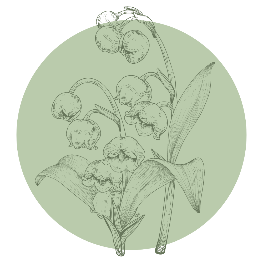 Vintage style flower drawing of a lily of the valley.